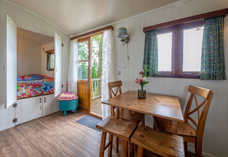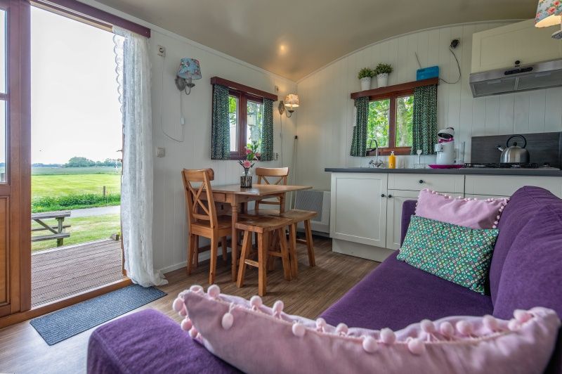 La roulotte se trouve sur un emplacement privé dans le jardin et offre une large vue sur le village de pêcheurs d'Oudeschild et sur les vaches qui paissent dans le pré. L'espace de vie comprend un coin salon/salle à manger avec une table et des chaises et un canapé. La cuisine est équipée d'une cuisinière à gaz, d'une cafetière Senseo, d'un réfrigérateur et d'un évier. Il y a 2 lits pour 2 personnes. La salle de bains (située à côté de la roulotte) est équipée d'un lavabo, d'une douche et de toilettes. Cette roulotte dispose de sa propre terrasse et d'un jardin avec une table de pique-nique.