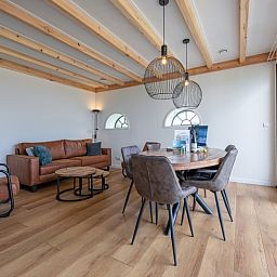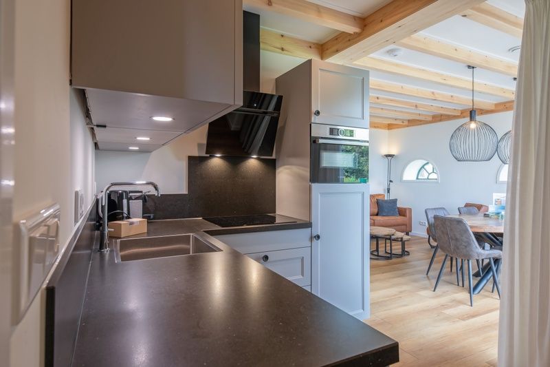 Entrée avec toilettes séparées. Séjour/cuisine avec coin salon avec télévision intelligente et coin repas. La cuisine est équipée d'un lave-vaisselle, d'un micro-ondes combiné, d'un Nespresso et d'une bouilloire.