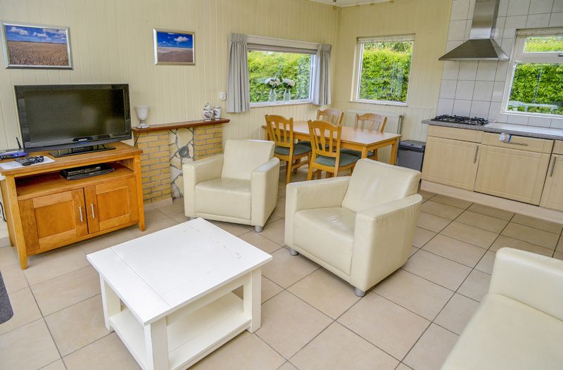 La cuisine de ce bungalow indépendant pouvant accueillir 4 personnes est équipée d'un four à micro-ondes combiné, d'un lave-vaisselle, d'une cafetière et d'une machine à café Senseo. Le salon dispose d'un coin salon avec télévision et lecteur DVD. Il y a également un coin repas. Il y a deux chambres, dont une avec un lit double. L'autre chambre dispose de deux lits simples. La salle de bains est équipée d'une douche. Il y a des toilettes séparées. Ce bungalow dispose d'un grand jardin avec une terrasse abritée. Du mobilier de jardin est à votre disposition.