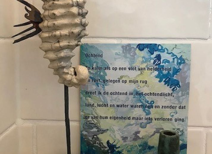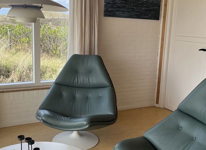 Le cottage est entièrement de plain-pied et, en 2023, du marmoléum a été posé dans toutes les pièces, avec un chauffage par le sol réglable par pièce. La maison donne une impression d'espace grâce à ses hauts plafonds. La belle salle de séjour lumineuse a des fenêtres sur trois côtés et une porte coulissante donnant accès à la terrasse partiellement couverte orientée vers le sud. Dans le salon, vous trouverez une petite télévision à écran plat à bras pivotant, une radio/lecteur CD, une petite collection de livres, des jeux de société et plusieurs CD dans l'armoire. Sur le tableau d'affichage, vous trouverez des informations utiles sur Vlieland et le gîte, y compris le code wifi.