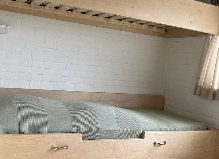L'agréable chambre à coucher orientée au sud est équipée d'un lit superposé. Dans cette chambre, une belle vasque en pierre naturelle sert d'évier et il y a une armoire fixe. Dans cette armoire, vous trouverez également des coussins pour les chaises de jardin. Les lits sont équipés de couettes synthétiques simples et d'oreillers synthétiques.