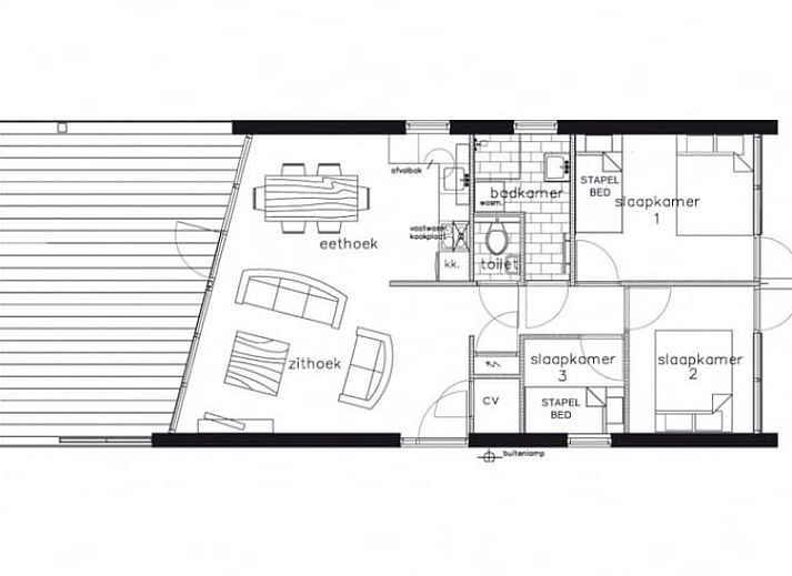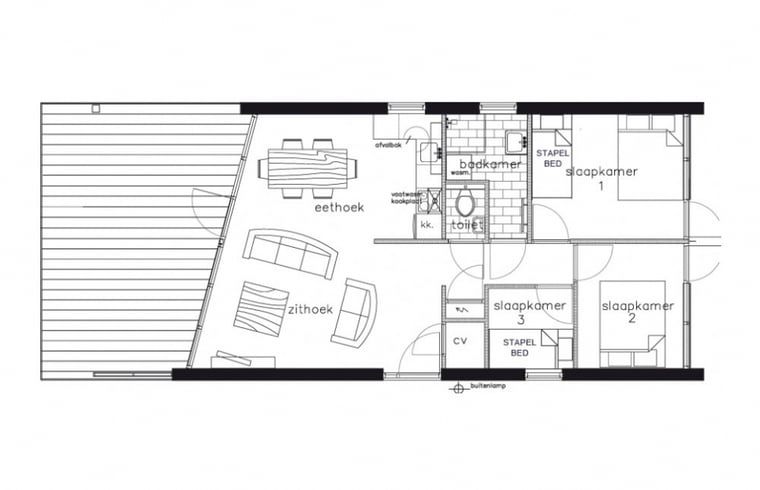 Le cottage est équipé d'une cuisine ouverte avec four à micro-ondes, lave-vaisselle et cuisinière à gaz 4 feux, cafetière et bouilloire, d'un spacieux coin salon et salle à manger adjacent au jardin, d'un canapé d'angle / canapé-lit avec espace de rangement (taille du couchage : 145x195cm), WiFi gratuit, 3 chambres à coucher (2 lits doubles, 2 lits superposés), salle de bains avec cabine de douche, toilettes séparées, jardin avec terrasse au bord de l'eau orientée au sud, mobilier de jardin et parasol.