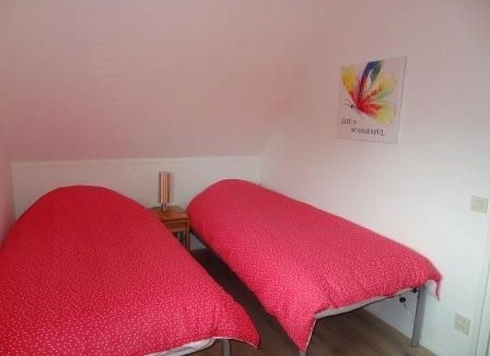 On the ground floor is the living room, one bedroom with two single beds and television, kitchen and bathroom (2015) with toilet. The living/dining room has a cosy seating area with two sofas and a dining table with six chairs. TV, radio and DVD are available. The kitchen (2015) is fully equipped with dishwasher, fridge, 4-burner gas cooker, combi oven, etc. Upstairs are two bedrooms, each with a sink with hot and cold water and built-in wardrobes. One bedroom has a double bed with adjustable base, the other has two single beds. High chair, playpen and cot are provided. All windows have exterior shutters and interior blinds and/or slats that insulate the house in summer and winter. The entire house is heated by central heating.