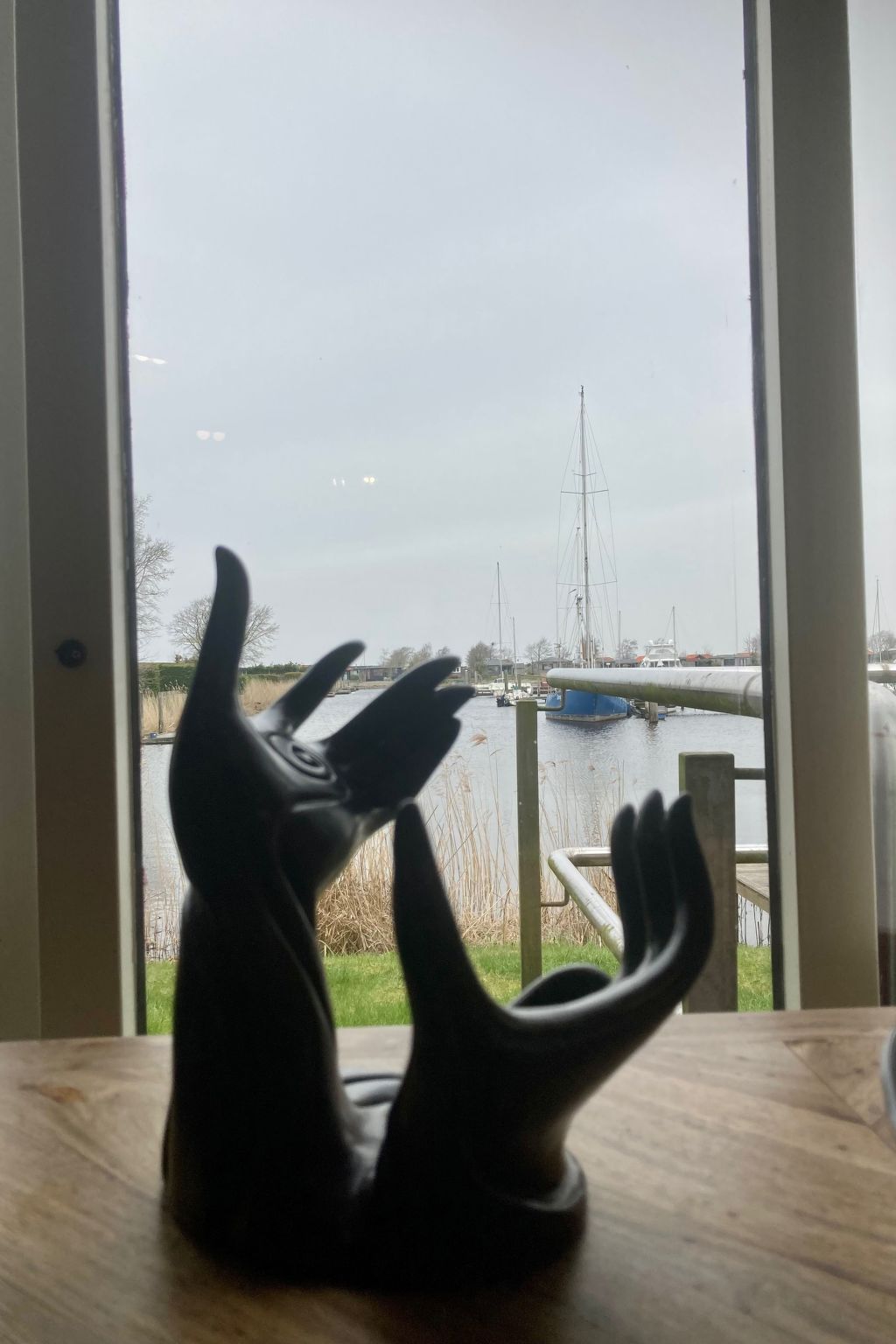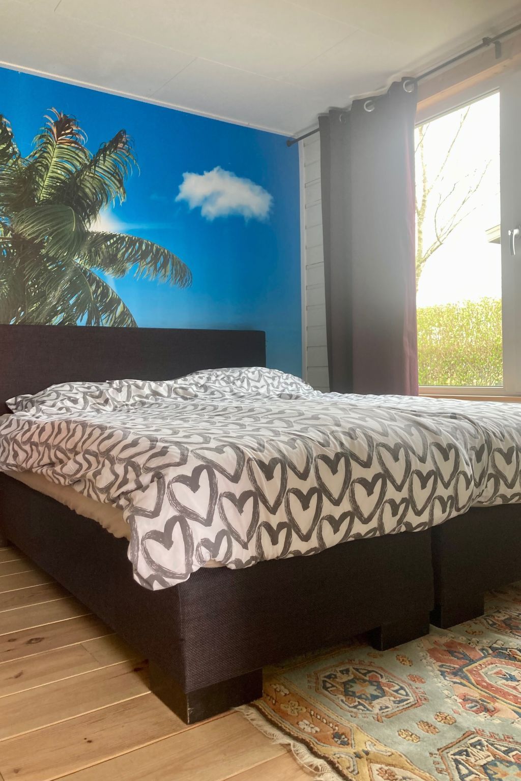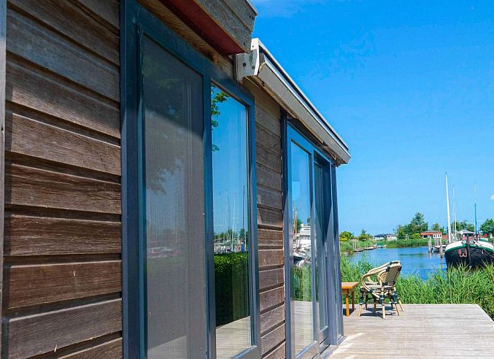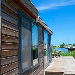 Chalet Valentina can be reached at ground level via two steps and is suitable for up to 4 people! From the living room, which has a stylish gas stove, you can look directly onto the water. The kitchen is fully equipped with oven/microwave and dishwasher. The house has its own 2 person infrared sauna. As well as a washing machine. One of the two bedrooms has a large window facing the dyke. The property is fenced to the water side and can only be seen from the water side.