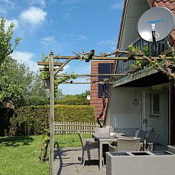 A small garden with garden furniture and a terrace where you can barbecue rounds off the whole thing.