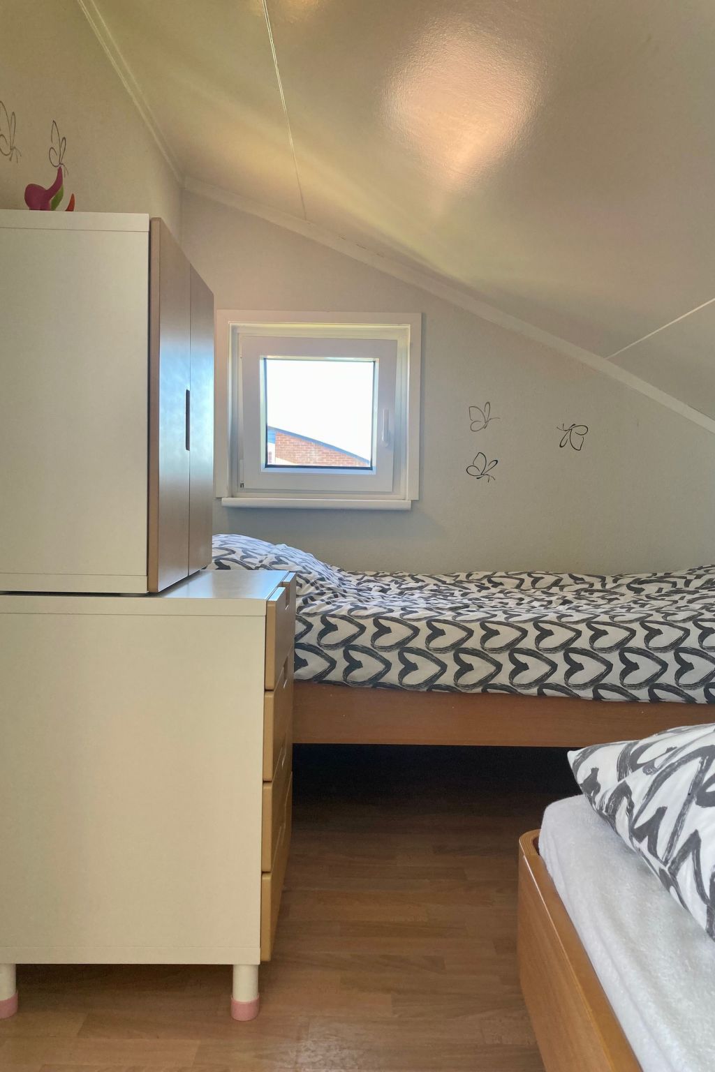 The interior of the house is designed to make your stay as comfortable as possible. Three bedrooms provide enough space for all guests, while the sole-use washing machine in the bathroom, which was remodelled in 2025, offers all the comforts of home. The cosy pellet stove lends a warm atmosphere to the evenings, and the well-equipped kitchen with ceramic hob, coffee machine, dishwasher and kettle makes it effortless to conjure up meals for the whole group.