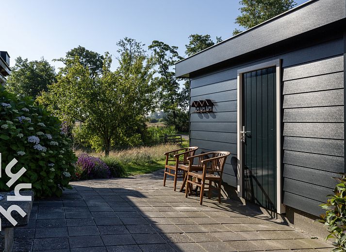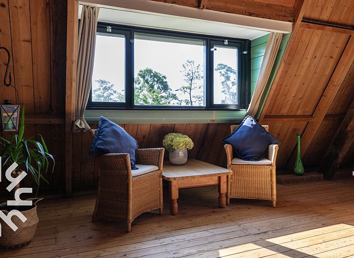 Au rez-de-chaussée se trouve la salle de séjour avec un coin salon et salle à manger et une cheminée chaleureuse. La cuisine est équipée d'une cuisinière à gaz à quatre feux, d'un réfrigérateur, d'une bouilloire et d'une machine à café Senseo. La salle de bains est équipée d'une douche et d'un lavabo. Les toilettes sont séparées. Au premier étage se trouve la chambre à coucher spacieuse avec un lit double (200x200cm). Dans le jardin se trouve une terrasse avec des meubles de jardin. Il y a un abri où les vélos peuvent être rangés sous clé. Toutes les pièces sont équipées de stores et de moustiquaires.