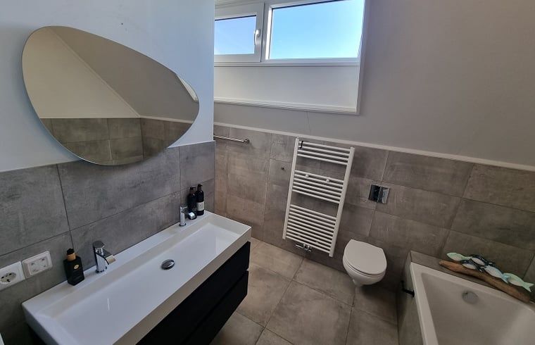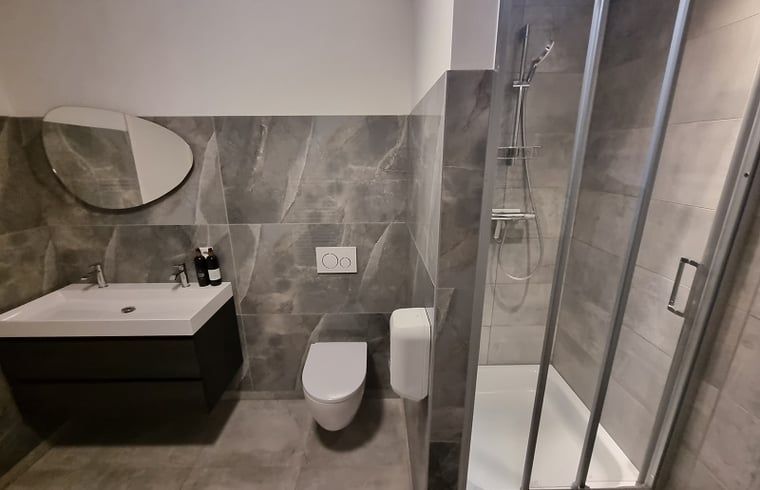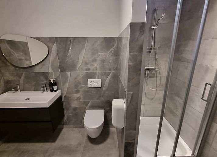 La cuisine ouverte avec îlot de cuisson luxueux fait partie du salon et est équipée, entre autres, d'un four multifonctionnel, d'un lave-vaisselle et d'une machine à café Nespresso. Les toilettes sont séparées de l'entrée.