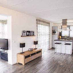 La villa de type Smient dispose d'un salon et d'une cuisine ouverte. Par les portes coulissantes de la terrasse, vous accédez à la terrasse en bois avec mobilier de jardin, où vous pouvez profiter d'une expérience aquatique optimale. Il y a des toilettes au rez-de-chaussée.