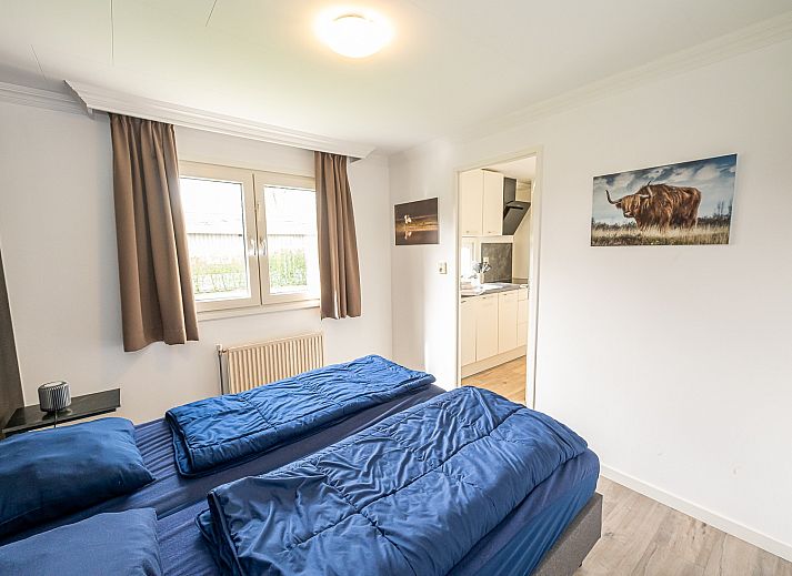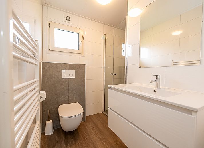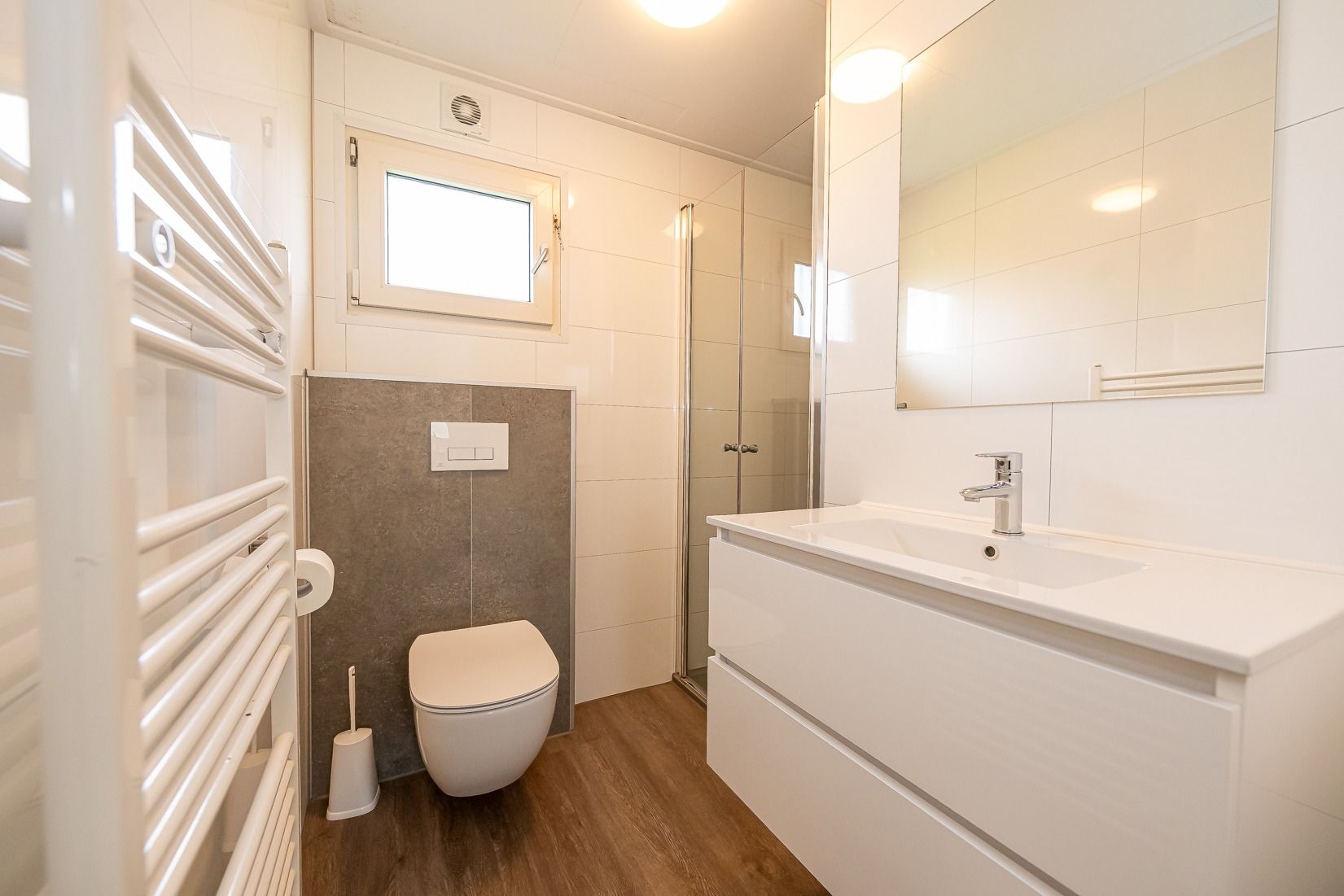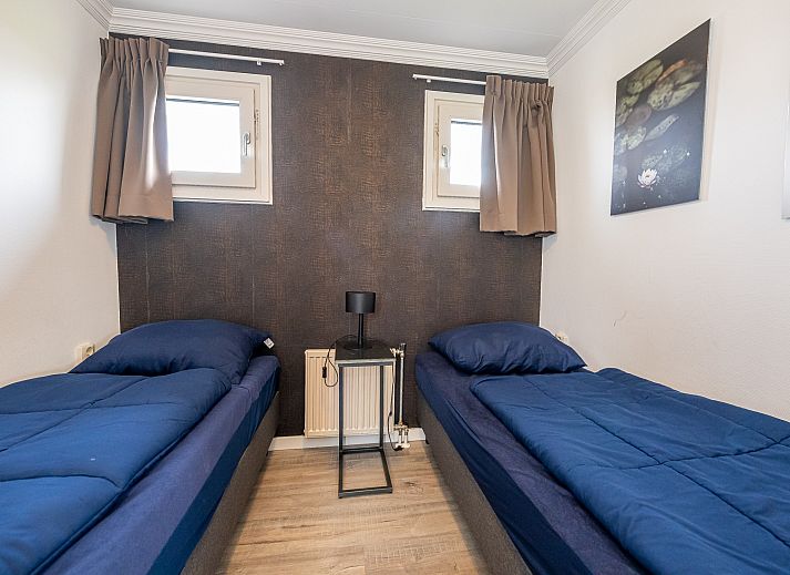 Het chalet beschikt over twee slaapkamers, beide met kastruimte. De badkamer is eigentijds uitgevoerd en voorzien van een wastafelmeubel, ruime inloopdouche en een toilet.