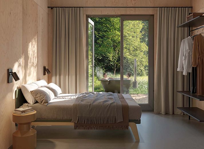 Alle lodges zijn gebouwd volgens de geldende BENG-normen en voldoen aan hoge duurzaamheidscriteria. Ze zijn voorzien van hoogwaardige isolatie, warmtepompen en energiezuinige installaties. Door de clustering van de woningen ontstaat een intieme, parkachtige opzet waarbij privacy, rust en landschappelijke kwaliteit centraal staan. Je investeert dus niet in één specifieke woning maar in een uitgebalanceerde woningstructuur binnen een professioneel ontwikkeld eco-resort. Juist deze combinatie van woningtypen, duurzaamheid en landschappelijke integratie vormt de basis voor een sterke, toekomstbestendige exploitatie.