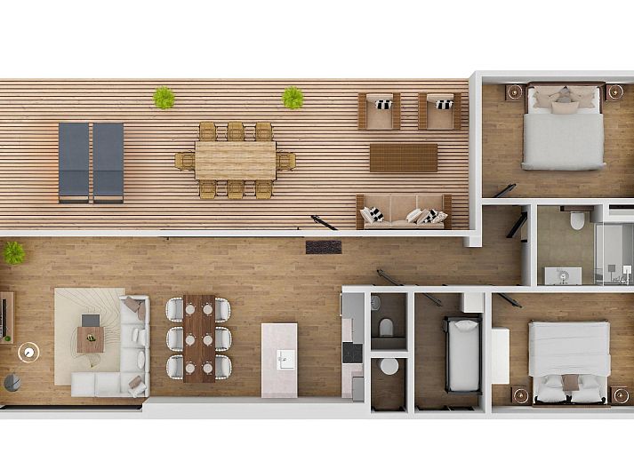 La Bos Villa est l'une des maisons de vacances les plus luxueuses des Pays-Bas et constitue le point de départ idéal pour un séjour relaxant au milieu de la nature et de l'eau. La maison est adaptée aux familles, aux amis ou à plusieurs générations, où le confort et l'ambiance sont primordiaux. Avec trois chambres confortables, dont deux avec des lits à sommier tapissier et une avec des lits superposés, la villa offre beaucoup d'espace. La salle de bains moderne est équipée d'une douche à l'italienne et de toilettes séparées. Le salon spacieux, avec ses panneaux muraux en cuir, dispose de la climatisation, d'une connexion Wi-Fi gratuite et d'une télévision. La cuisine ouverte entièrement équipée comprend notamment un four à micro-ondes combiné, une plaque à induction et un robinet d'eau bouillante. De grandes fenêtres laissent entrer beaucoup de lumière, tandis que la terrasse partiellement couverte invite à profiter de la vue sur la forêt environnante. Le parc de vacances BreeBronne est situé dans le nord du Limbourg et propose diverses installations telles qu'un lac de loisirs avec plage, une piscine intérieure et un restaurant proposant des produits régionaux. Les environs boisés se prêtent parfaitement à la randonnée et au vélo, ce qui garantit des vacances variées et agréables.