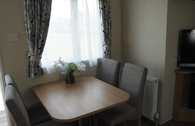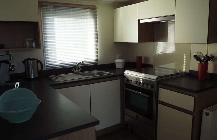 Un mobil-home spacieux situé sur un petit camping tranquille. Il y a deux chambres à coucher, dont l'une a une salle de bain attenante. L'autre salle de bains se trouve à côté de la deuxième chambre. Il y a une grande cuisine entièrement équipée, une salle de séjour confortable avec salon et salle à manger et une terrasse privée avec mobilier de jardin. Entrée privée du parking.