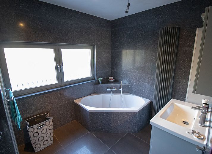 La salle de séjour dispose d'un coin salon et d'un coin salle à manger avec une télévision à écran plat. La cuisine comprend une plaque de cuisson à induction, un réfrigérateur-congélateur, un lave-vaisselle, une cafetière Senseo et une bouilloire. Il y a cinq chambres au total. La première chambre, située au rez-de-chaussée, dispose d'un lit double et d'une salle de bains attenante. La salle de bains comprend une douche, une baignoire, un lavabo et des toilettes. Au premier étage, il y a trois chambres avec un lit double et une chambre avec un lit simple. Il y a également une deuxième salle de bains au premier étage avec une douche, une baignoire, un lavabo et des toilettes. Il y a également des toilettes séparées. A l'extérieur, il y a un jardin avec des meubles de jardin. Cette maison de vacances dispose d'un grand parking.