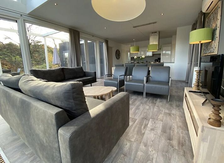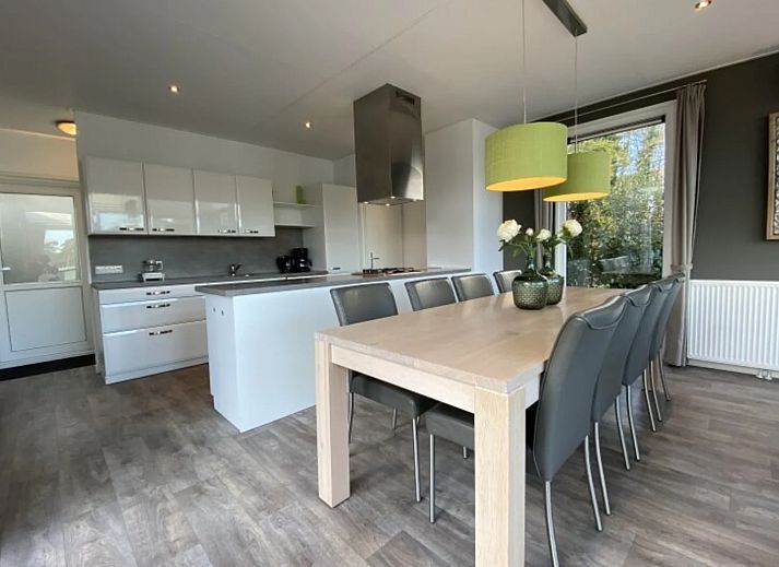 De lichte, gezellige living vormt het hart van de woning en is voorzien van een moderne open keuken met alle benodigde apparatuur, waaronder een kookplaat, afzuigkap, koel-vriescombinatie, vaatwasser, magnetron en oven. Hier is het heerlijk samen koken, tafelen en natafelen – precies zoals vakantie bedoeld is.