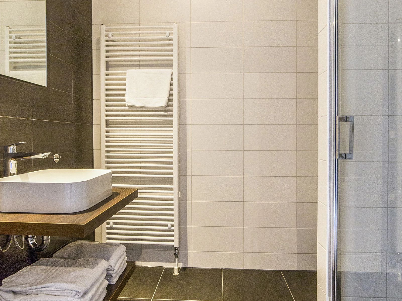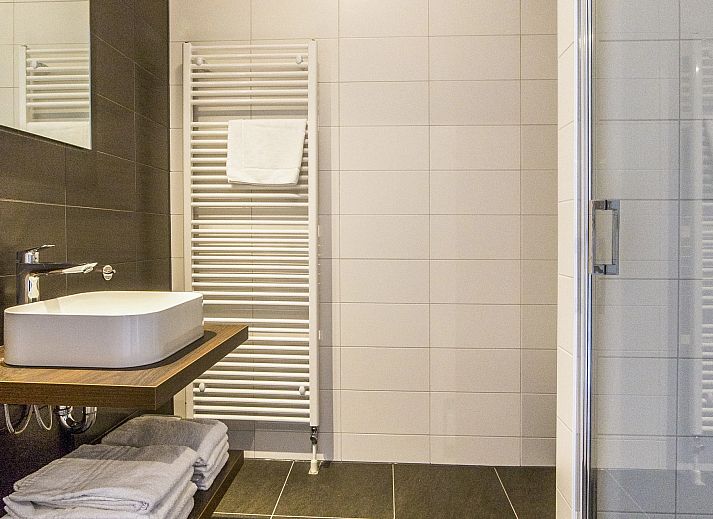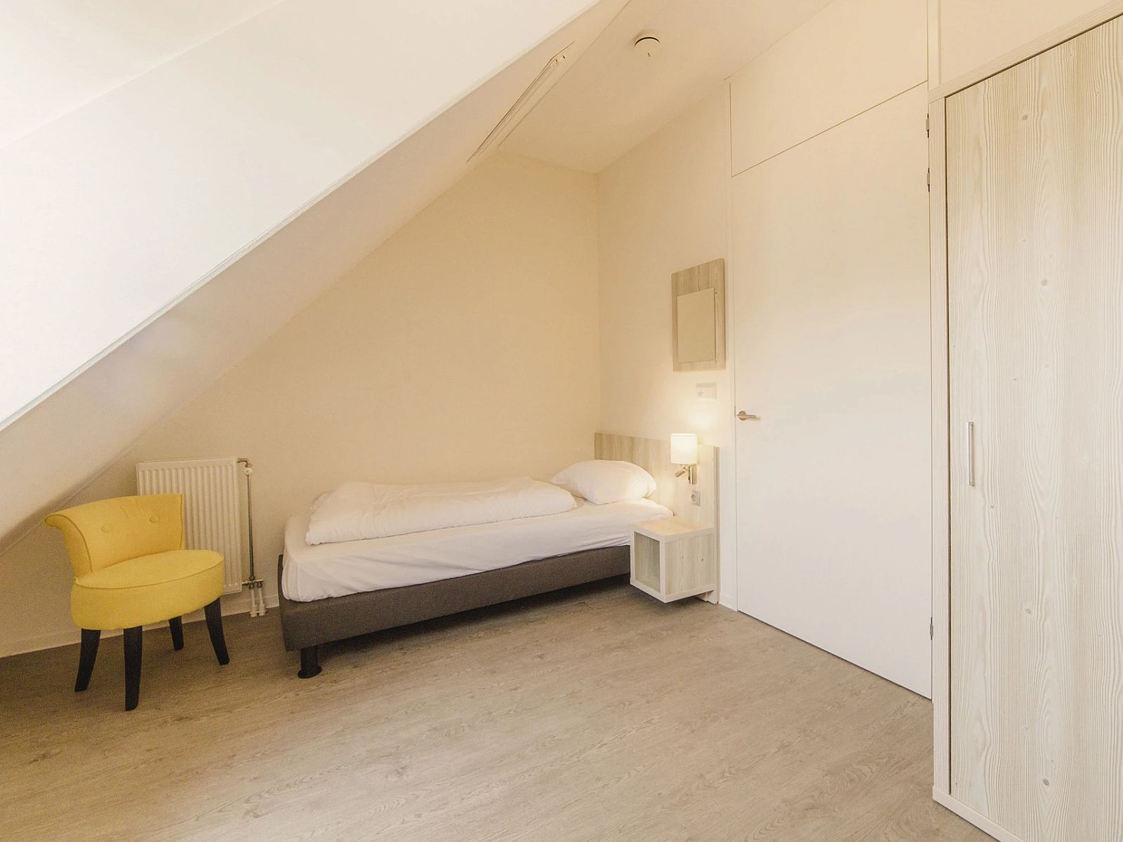 Op de eerste verdieping bevinden zich twee slaapkamers met elk twee éénpersoonsbedden en een badkamer met inloopdouche, wastafel en toilet. Daarnaast is er een separaat toilet aanwezig. Het appartement is alleen bereikbaar via een trap.