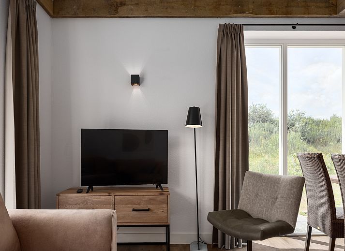 À l'intérieur, vous avez tout ce que vous attendez d'une villa contemporaine; un beau living avec TV, une cuisine ouverte comprenant entre autres un lave-vaisselle et un micro-onde combiné, trois chambres et une salle de bain. Tous les lits sont de type simple. sommier à ressorts, même en chambre 2 pers. installer. Les salles de bain sont pourvues d'une douche à l'italienne et des toilettes. Il y a aussi des toilettes séparées dans le hall. La troisième chambre est une mezzanine.