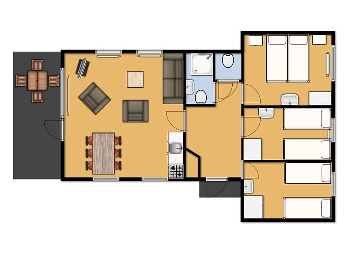 Ces bungalows à quatre chambres, d'une superficie de 65 m2, sont adaptés aux fauteuils roulants et bénéficient d'une situation très centrale.