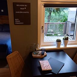 Notre B&B est un charmant hébergement confortable situé à la lisière du Biesbosch. De l'avant, vous ne pouvez pas voir la vue magnifique que vous avez à l'arrière du séjour ! Un cadeau, comme le décrivent les clients. Le B&B est attenant à la maison, mais accessible par sa propre entrée, ce qui vous donne beaucoup d'intimité. L'espace de ce gîte naturel convient à un maximum de 3 adultes ou 2 adultes avec 2 enfants. Le B&B se compose d'un salon, équipé d'un canapé, d'un coin repas et d'une kitchenette (réfrigérateur, bouilloire, machine Nespresso et cuisinière électrique à un feu). La chambre à coucher est séparée par une porte coulissante et équipée d'un sommier de 160. Par la porte de la chambre à coucher, vous avez accès à la terrasse au bord de l'eau (De Gantel) avec un canapé-lit offrant une vue magnifique. Notre B&B dispose d'une salle de bain avec douche et d'une toilette séparée dans le hall. Le séjour comprend un petit déjeuner complet !