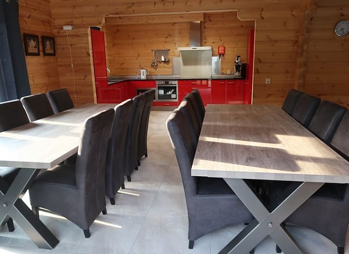 À la mi-juin 2018 a ouvert la maison familiale en bois complet , classé selon recron ( groupe de classification nationale hébergements ) avec 5 étoiles ( score maximum ).Cet hébergement est adapté pour max 16 personnes , non fumeur , wifi disponible , rez de chaussée avec chauffage au sol , à l'étage chauffage central.Tout est si bien isolé aux règles les plus modernes , rh valeur plus de 6 , trois double vitrage , aussi pour prévenir la pollution sonore .La maison familiale est située au milieu d'un petit parc, avec beaucoup d'espace autour, y compris le jardin et la terrasse, gril extérieur / zone de barbecue, y compris 16 chaises et tables extérieures, à travers 2 portes coulissantes directement à l'hébergement, avec de nombreuses places de stationnement.Les voisins : petits chalets en rondins et hébergement de groupe à une bonne distance.Football / terrain de jeu présent sur la Klokkenlaan, pour les enfants il y a une aire de jeux avec balançoires, bac à sable, baby-foot / tennis, etc. Départ le dimanche (réservation pour le week-end) avant 18h00.