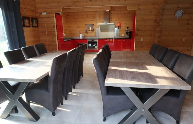 À la mi-juin 2018 a ouvert la maison familiale en bois complet , classé selon recron ( groupe de classification nationale hébergements ) avec 5 étoiles ( score maximum ).Cet hébergement est adapté pour max 16 personnes , non fumeur , wifi disponible , rez de chaussée avec chauffage au sol , à l'étage chauffage central.Tout est si bien isolé aux règles les plus modernes , rh valeur plus de 6 , trois double vitrage , aussi pour prévenir la pollution sonore .La maison familiale est située au milieu d'un petit parc, avec beaucoup d'espace autour, y compris le jardin et la terrasse, gril extérieur / zone de barbecue, y compris 16 chaises et tables extérieures, à travers 2 portes coulissantes directement à l'hébergement, avec de nombreuses places de stationnement.Les voisins : petits chalets en rondins et hébergement de groupe à une bonne distance.Football / terrain de jeu présent sur la Klokkenlaan, pour les enfants il y a une aire de jeux avec balançoires, bac à sable, baby-foot / tennis, etc. Départ le dimanche (réservation pour le week-end) avant 18h00.