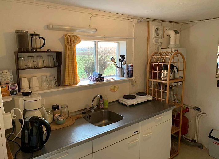 Le cottage dispose d'un salon confortable et lumineux avec un canapé-lit, un coin salon et une table à manger. Dans la cuisine, qui comprend une machine à café, un four combiné/micro-ondes, une plaque de cuisson à deux feux et un réfrigérateur, il y a également une cabine de douche. Dans le grand hall d'entrée, vous trouverez des toilettes. Le linge de cuisine, les serviettes et les draps sont fournis. Il n'y a pas de parking à la maison de vacances, mais à environ 30 mètres se trouve une place de parking gratuite.