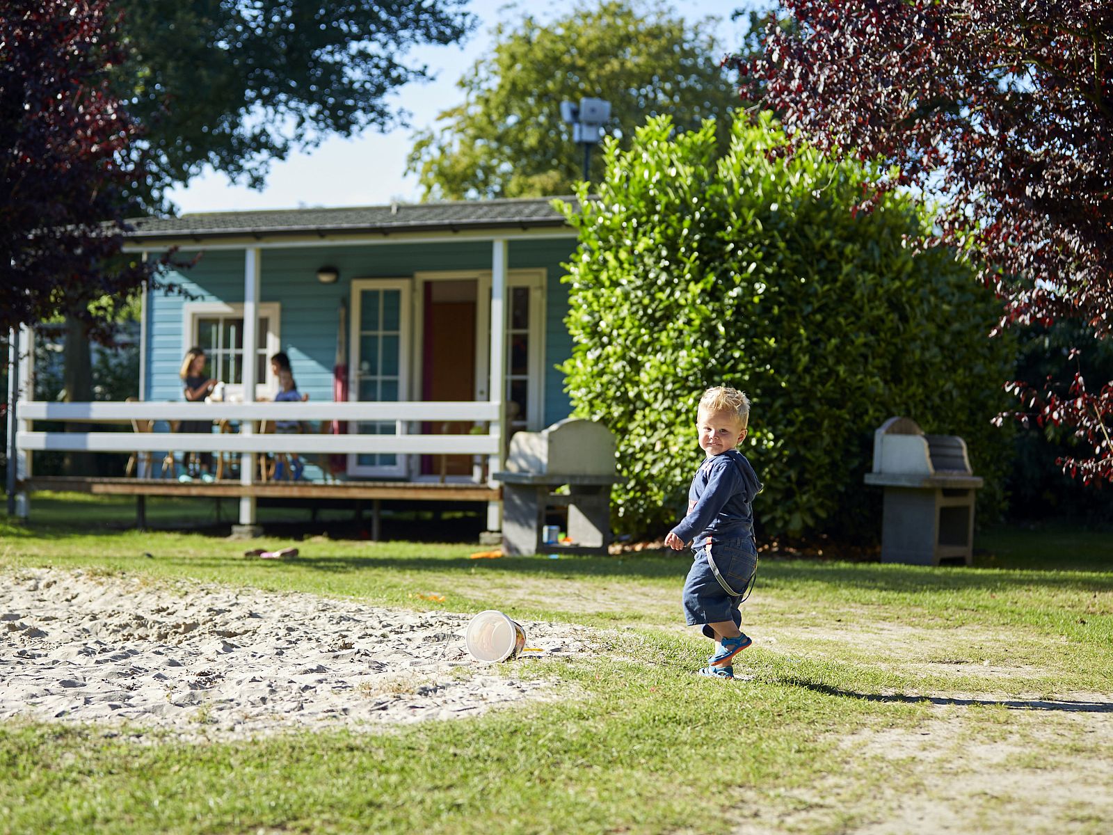 Chalets confortables pour 5 personnes avec véranda situés sur un terrain agréable avec des équipements de jeux.