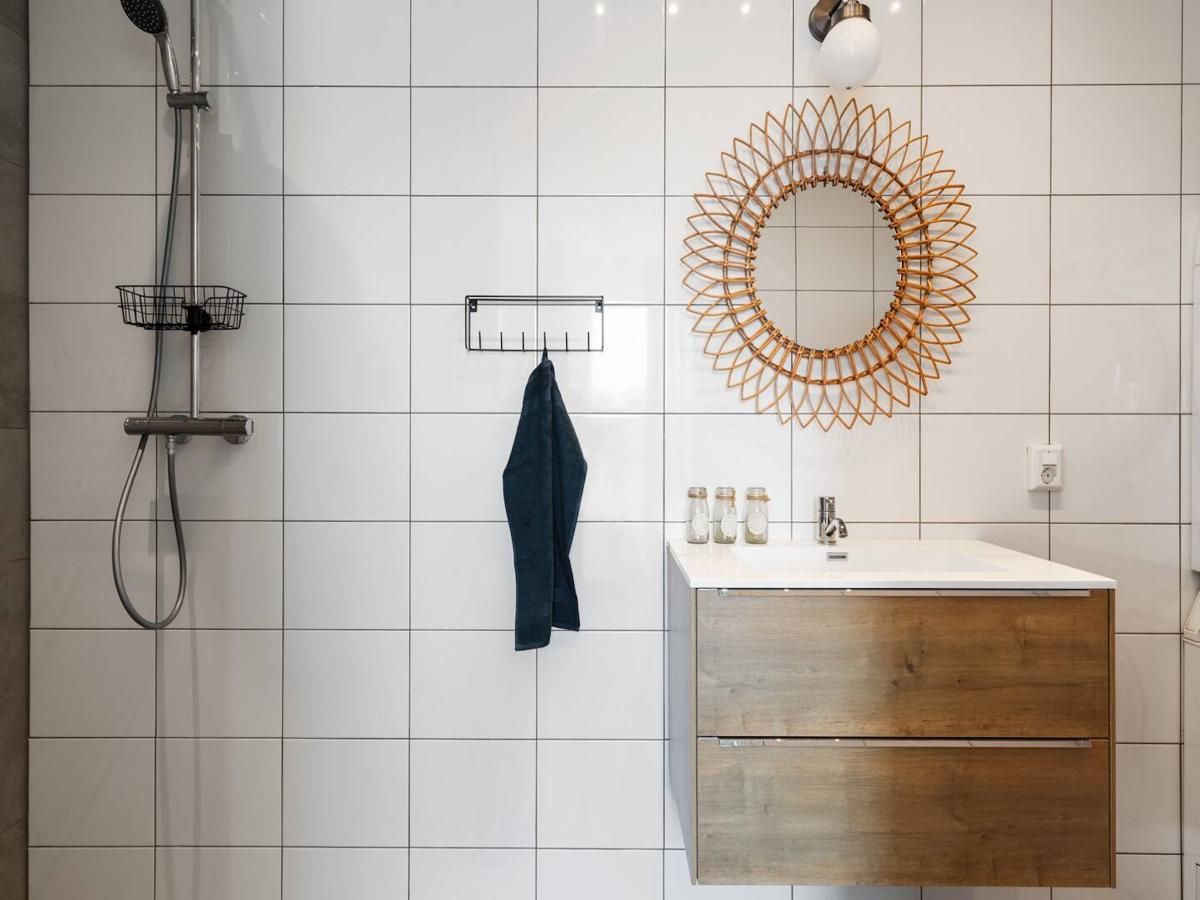 Rez-de-chaussée: (hall d'entrée, cuisine(bouilloire, cuisinière(4 foyers, gaz), hotte, cafetière(filtre), four/micro-onde combinés, lave-vaisselle , réfrigérateur), séjour/salle à manger(TV(smart TV, chaînes de télévision néerlandaises, chaînes de télévision allemandes, chaînes de télévision internationales), table, coin salon), chambre(4x lit simple, lit simple), salle de bain(douche, lavabo, WC), WC(WC), remise(réfrigérateur, congélateur, sèche-linge, lave-linge , aspirateur, table à repasser, fer à repasser))