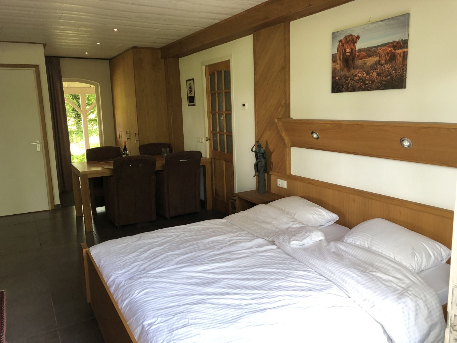 Cet appartement spacieux pour deux personnes, situé dans une maison de campagne, offre une expérience unique dans un cadre rural, idéal pour un séjour relaxant. Magnifiquement situé avec vue sur les lacs de Kraaijenberg, les environs invitent à de superbes promenades à pied et à vélo. L'appartement est entièrement de plain-pied et équipé de tout le confort nécessaire pour un séjour sans souci.Le salon spacieux est équipé d'une smart TV avec fonction de streaming, pour que vous puissiez vous détendre après une journée passée dans la nature. La cuisine ouverte est équipée d'une plaque à induction, d'un réfrigérateur sans compartiment congélateur, ainsi que de toutes les casseroles et de la vaisselle nécessaires. La chambre offre tout le confort nécessaire avec un lit double et des rangements supplémentaires, tandis que la salle de bains moderne est équipée d'une douche et de toilettes. Profitez de votre terrasse privée, où vous pourrez vous détendre et profiter du calme de la nature environnante. L'appartement dispose également d'un jardin entièrement clôturé, d'une véranda et d'un local à vélos, ce qui en fait un lieu idéal pour les vacanciers actifs. La proximité des lacs offre de nombreuses possibilités de sports nautiques et de loisirs. Cette maison de vacances est le point de départ idéal pour une semaine de détente dans un cadre serein.