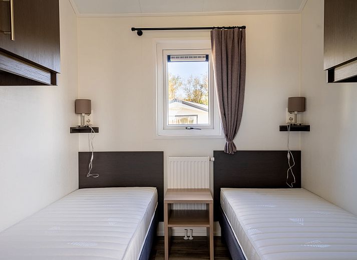 Velthorst 6 - Het vrijstaande chalet Velthorst 6 heeft een warm karakter met zijn kleurrijke interieur. Het is gelijkvloers en geschikt voor 6 personen. De lichte woonkamer heeft een heerlijke zithoek met televisie, een eethoek voor 6 personen en de keuken is van alle gemakken voorzien. Denk aan een vaatwasser, combimagnetron, filter koffiezetapparaat en spoelbak. In het chalet bevinden zich 3 slaapkamers, waarvan 1 met 2 eenpersoonsbedden, 1 met een tweepersoonsbed en 1 met een stapelbed. De nette badkamer heeft een douche, toilet en wastafel.