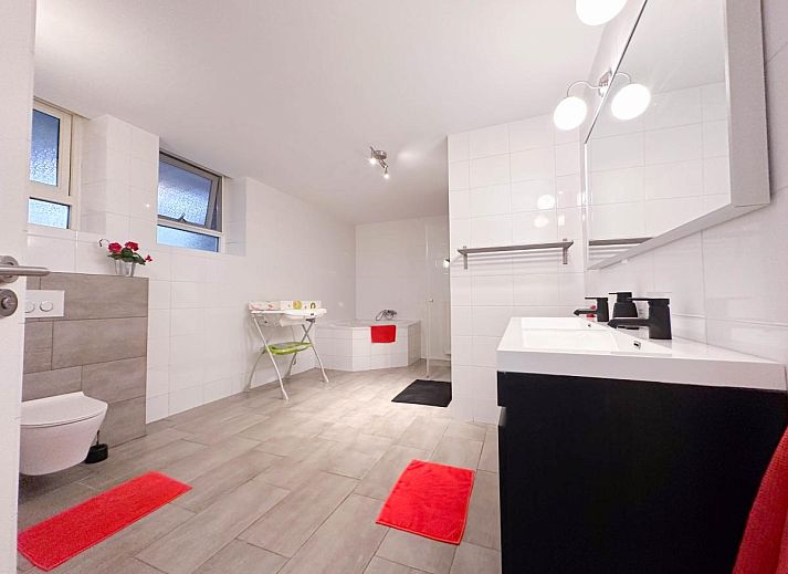 Ce logement est équipé de toutes les commodités. Il y a un beau salon avec un feu de gaz qui crée immédiatement une atmosphère. Dans le jardin, vous trouverez un bain à remous et au sous-sol, vous trouverez un sauna et une salle de bain luxueuse. Les enfants ont également été pensés. Des chaises hautes et un lit d'enfant sont disponibles. Pour des raisons de sécurité, des barrières d'escalier ont également été installées. Et dans le jardin entièrement clos, il y a un grand trampoline. Tout a été pensé pour un merveilleux séjour avec un groupe de jusqu'à 12 personnes. Par exemple, la cuisine bien équipée ne compte pas moins de deux réfrigérateurs, ce qui permet d'avoir beaucoup de place pour les provisions. Les six chambres sont toutes équipées d'un lavabo et de confortables lits à sommier tapissier. Il y a une deuxième salle de bain et aussi des choses comme une machine à laver, un congélateur, un lave-vaisselle et une baignoire sont disponibles. Il y a beaucoup de place pour plusieurs voitures dans le logement. Et quand il fait beau, vous pouvez prendre le petit-déjeuner ou le dîner ensemble sous le toit de la terrasse. Que voulez-vous de plus ?