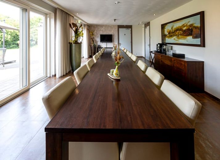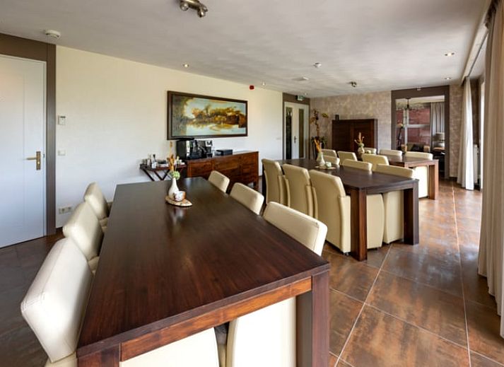 A la campagne, dans un cadre verdoyant, vous trouverez cette belle villa de vacances pour 16 à 18 personnes. Ici, vous pourrez profiter du luxe, du confort et de la chaleur en toute tranquillité. Il y a une cuisine spacieuse et un grand salon où vous pouvez cuisiner et prendre un verre avec tout le groupe. Avec 8 chambres uniques dotées de salles de bains privées, l'intimité ne manque pas. Sept chambres sont équipées, entre autres, d'une grande baignoire d'angle. La huitième chambre se trouve au rez-de-chaussée et est adaptée aux personnes handicapées. En option, le nombre de personnes peut être porté à 18, auquel cas deux lits pliants seront ajoutés dans les chambres. Pour compléter le tableau, vous pouvez en option (Week-end €295, Midweek €350 ou Semaine €450) utiliser un magnifique et relaxant spa. Celui-ci est équipé d'un bain à remous puissant et spacieux, d'un sauna finlandais avec possibilité d'eau chaude et d'un sauna infrarouge. La villa dispose d'une terrasse spacieuse où vous pourrez profiter du soleil couchant jusqu'à une heure tardive.