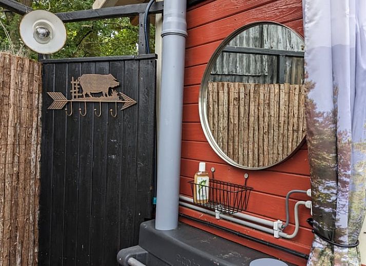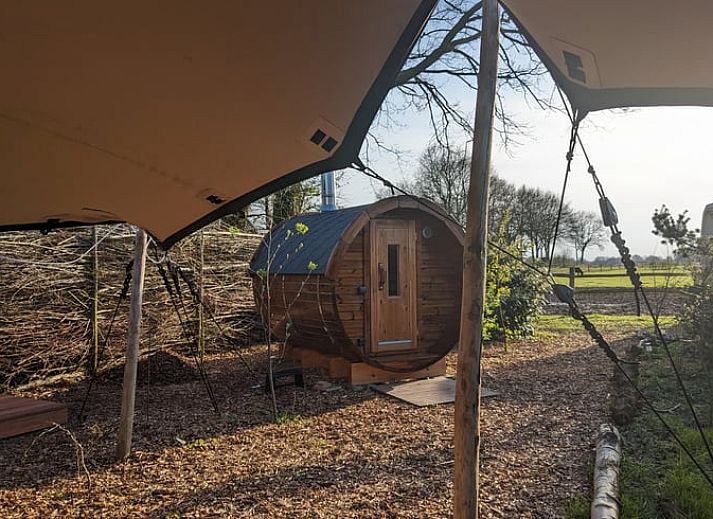 Le chalet est équipé d'eau froide courante, d'un réfrigérateur, d'une bouilloire, d'une cafetière et d'un sèche-linge. Une grande tente solide et un siège confortable devant celle-ci. Il y a une douche chaude extérieure privée et des toilettes écologiques juste à côté. A l'intérieur se trouvent deux lits simples avec de bons matelas et des spirales Auping. Les draps et les serviettes sont inclus. Il y a également un petit barbecue Weber. Parking privé.
