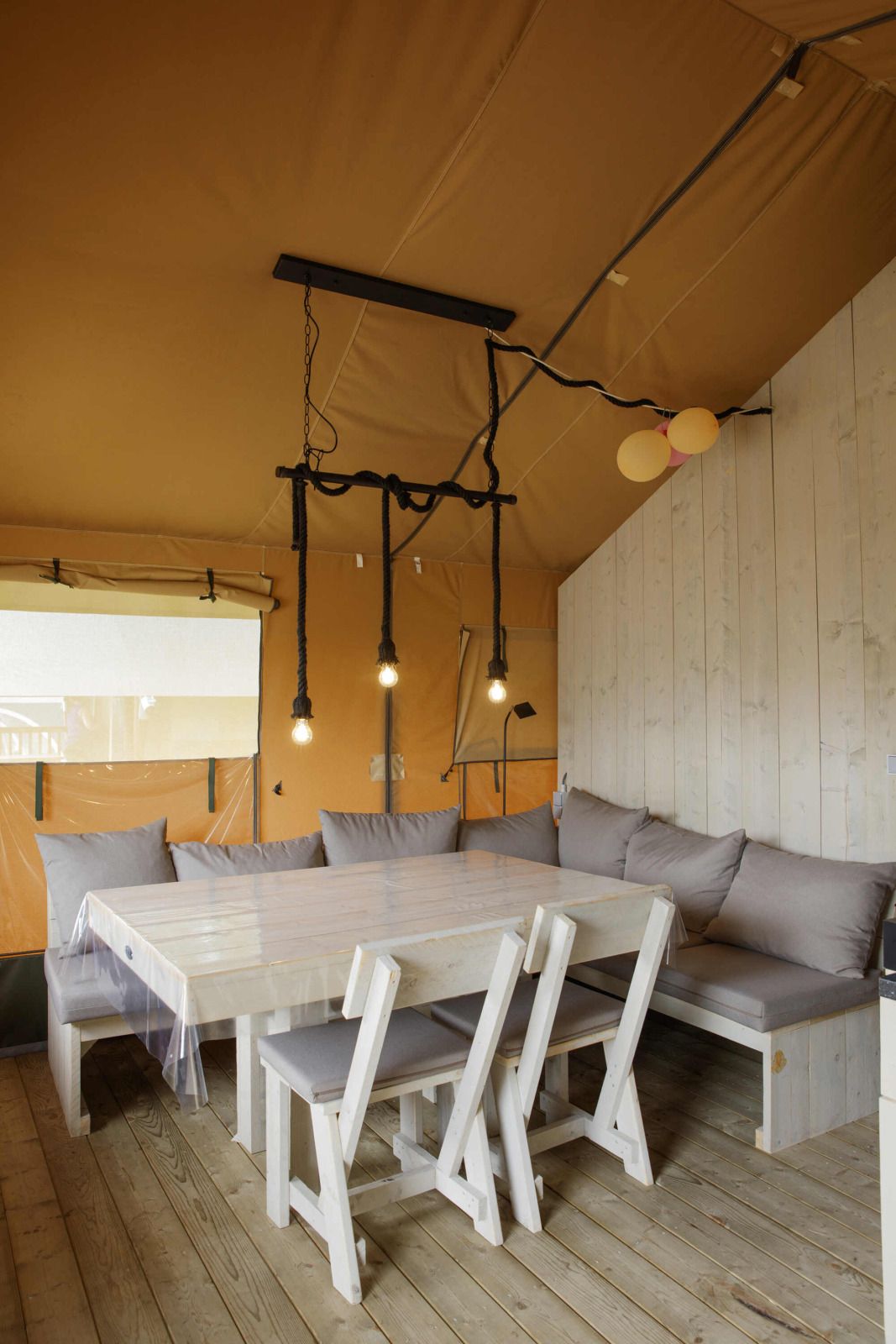 Faites l'expérience du camping de luxe dans une tente safari spacieuse à Costa Kabrita, situé sur le magnifique Brabantse Wal à Huijbergen. Cet hébergement unique peut accueillir six personnes dans trois chambres séparées : une chambre avec un lit double à baldaquin, une chambre avec deux lits simples et une chambre avec un lit superposé. La grande tente de 5 x 7 mètres dispose d'une généreuse terrasse extérieure de 5 x 3 mètres, où vous pourrez vous détendre. La tente est entièrement équipée d'une cuisine et même d'un hamac pour profiter de la nature. Idéale pour des vacances durables et confortables à proximité des forêts, des villes historiques comme Bergen op Zoom et de la polyvalente Kalmthoutse Heide belge. Vous pouvez séjourner pour un week-end, une semaine ou une semaine entière.