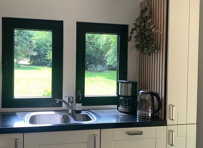 Situé dans une aile privée du manoir, ce cottage naturel dispose de sa propre allée avec parking, de son propre espace extérieur clôturé et de sa propre entrée, ce qui garantit 100 % d'intimité et de tranquillité. L'entrée s'ouvre sur le jardin et donne sur la cuisine équipée de tous les appareils électroménagers habituels. Les deux fenêtres au-dessus du plan de travail offrent une vue fantastique sur le jardin de la maison de campagne. De la cuisine, vous entrez dans le salon confortable avec une grande fenêtre donnant sur le jardin et votre terrasse. Dans le salon, à côté du coin salon, vous trouverez une télévision intelligente et une excellente connexion WIFI. Depuis le salon, vous pouvez accéder à la grande salle de bains avec une immense douche à l'italienne, deux lavabos et des toilettes. Enfin, la chambre romantique se trouve dans la "chambre de la tour", à laquelle on accède par un escalier en colimaçon depuis le salon. Trois immenses lucarnes vous permettent de dormir sous le ciel étoilé encadré par deux énormes hêtres.