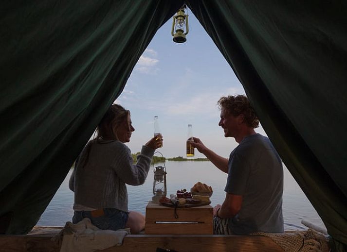 Le camping sur un Flotten Kampeervlot dans le Waterland est une expérience unique dans la belle campagne du Waterland. Vous obtenez un radeau de camping motorisé avec tout le matériel de camping nécessaire pour un séjour spécial d'une nuit. Un véritable camping sauvage dans les zones humides d'Amsterdam, des plages de coquillages, des roselières, des alcôves ou un plongeon matinal. Naviguez dans le Waterland pendant la journée et montez votre tente le soir en un rien de temps. Pendant la journée, vous pouvez vous procurer de la nourriture et des boissons à différents endroits. Le soir, un magnifique coucher de soleil ou un ciel étoilé vous attend. Le radeau est équipé d'un moteur de 4 CV. Equipement : Radeau de camping, réchaud à gaz, casserole, poêle à frire, jerrycan avec de l'eau potable, lits de camping, seau de toilette, tente pour 4 personnes, sac poubelle. Des toilettes et des douches sont disponibles au camp de base des flots, mais on en trouve aussi le long des itinéraires. La carte des bateaux se trouve sur les flots sous l'onglet régions.