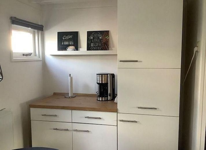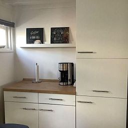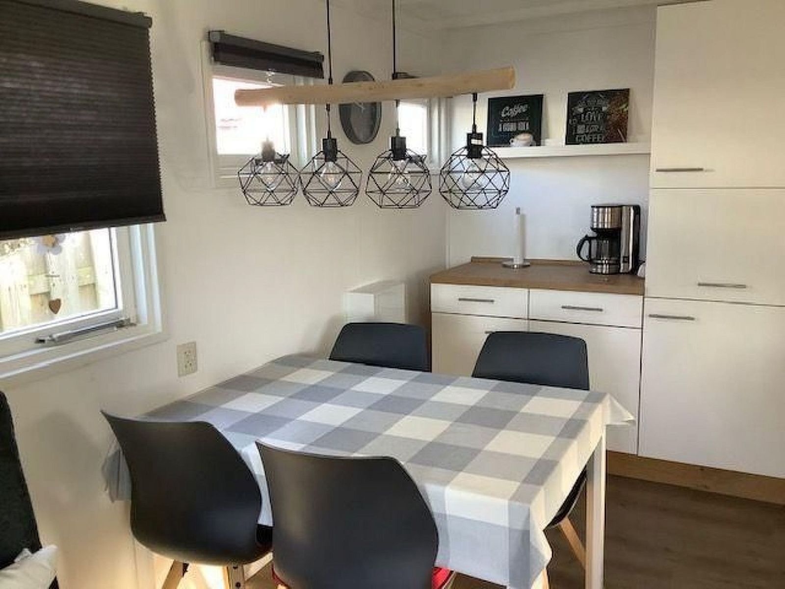 Kitchenette with appliances (fridge, mini oven, microwave, gas hob, coffee machine, toaster, sandwich toaster, hot air fryer, kettle, crockery, glasses and cutlery. All kitchen utensils are available, extendable dining table with up to 6 chairs, cupboards