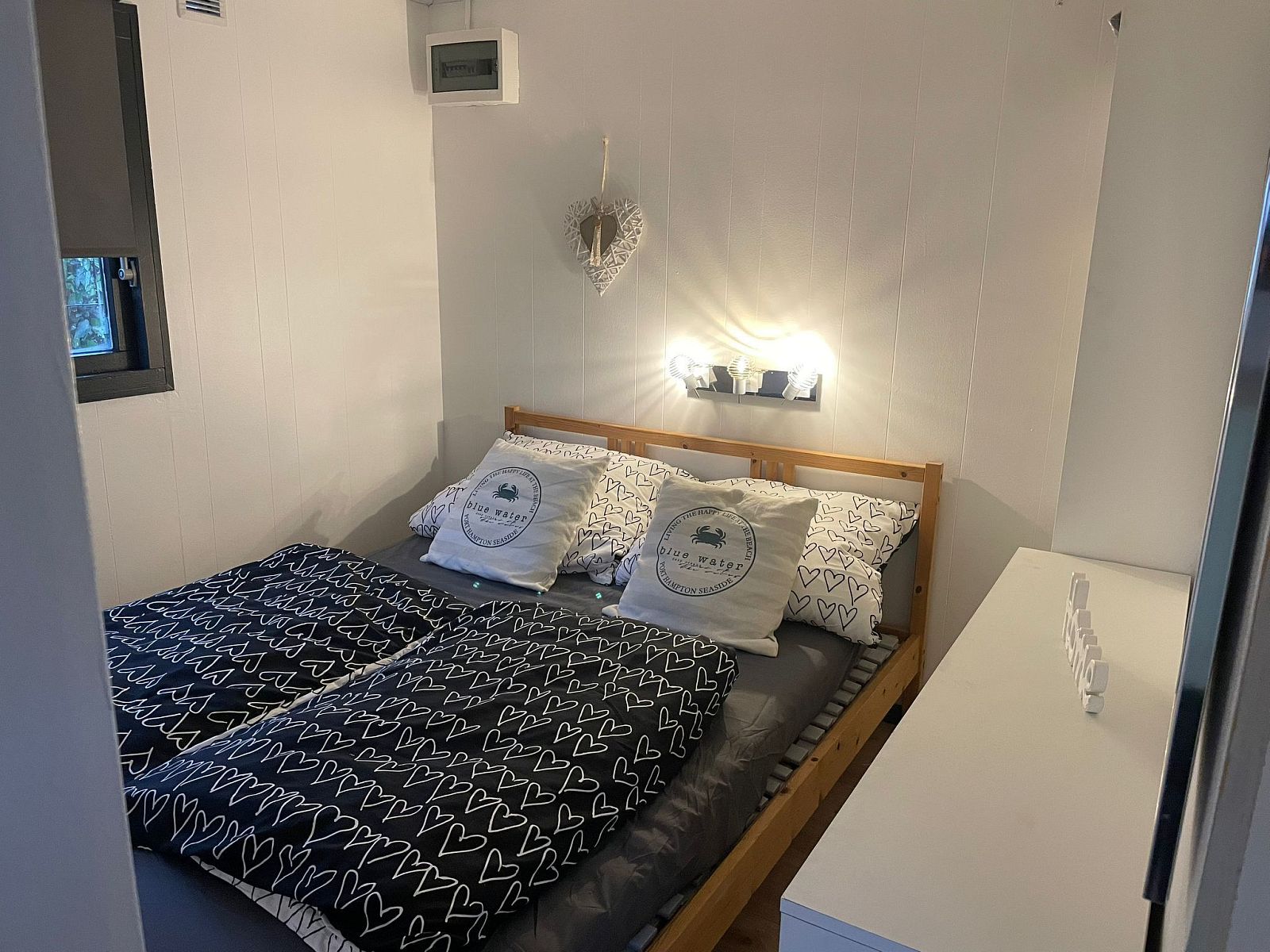 Le chalet "Welcome" fait environ 35m2 et dispose d'un salon et d'une salle à manger avec kitchenette, d'une salle de bain et de deux chambres. L'une d'entre elles est exclusivement réservée aux enfants.