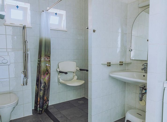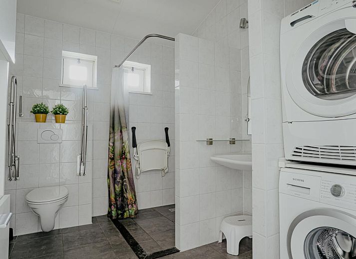 Cette maison de vacances pour 6 personnes est conçue pour un séjour relaxant pour tous. Il y a un salon spacieux avec une cuisine ouverte, une salle de bain adaptée avec une grande douche à l'italienne, des supports muraux et une chaise de douche. La grande chambre du rez-de-chaussée est équipée d'un lit haut/bas et d'un sommier. Il n'y a pas de seuils dans la maison. Avec un total de 3 chambres, la maison de vacances peut accueillir 6 personnes. La terrasse extérieure est bordée et également accessible en fauteuil roulant. Votre animal de compagnie est également le bienvenu ici !