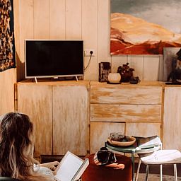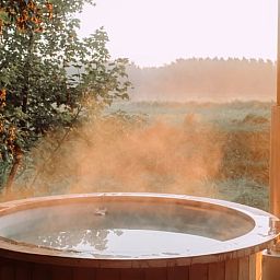 Profitez simplement de l'art dans notre studio d'art avec une grande terrasse et un jardin avec véranda. Cette résidence artistique peut accueillir 4 personnes. 't Atelier dispose d'une grande chambre à coucher avec des portes françaises et un confortable sommier double (1,60m) et dans la petite chambre à coucher nous avons un petit lit double (1,40m) sur une armoire de peintre. La salle de bains est équipée d'une douche à effet pluie et de toilettes. Le studio avec la cuisine, la salle à manger et le coin salon est un endroit agréable avec une belle vue sur une réserve naturelle avec des spatules, des familles d'oies et des oiseaux de prairie. Depuis la terrasse, vous pouvez entrer directement dans l'eau chaude de votre propre bain à remous chauffé au bois. Pour un séjour de bien-être en toute intimité, vous pouvez également réserver le sauna à barils. Les soucis quotidiens s'envolent et la vie de tous les jours s'éloigne soudain à des kilomètres.