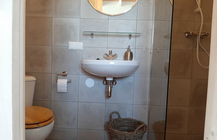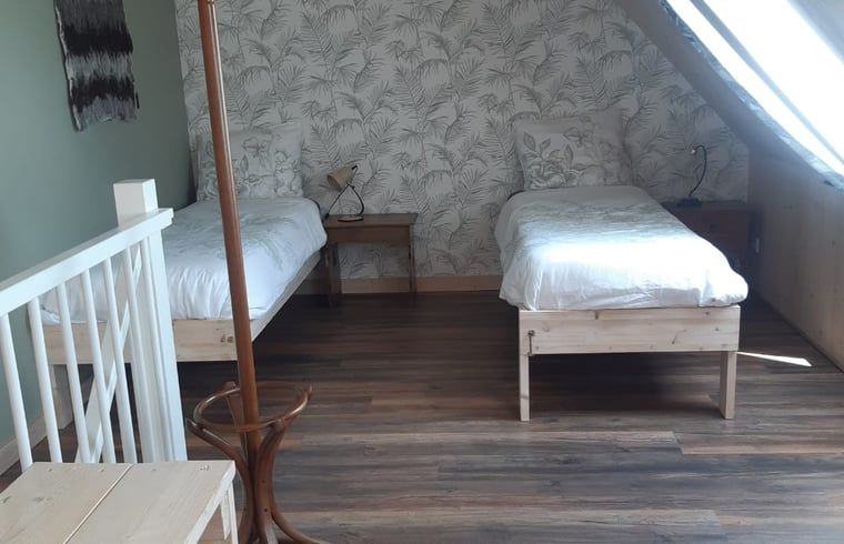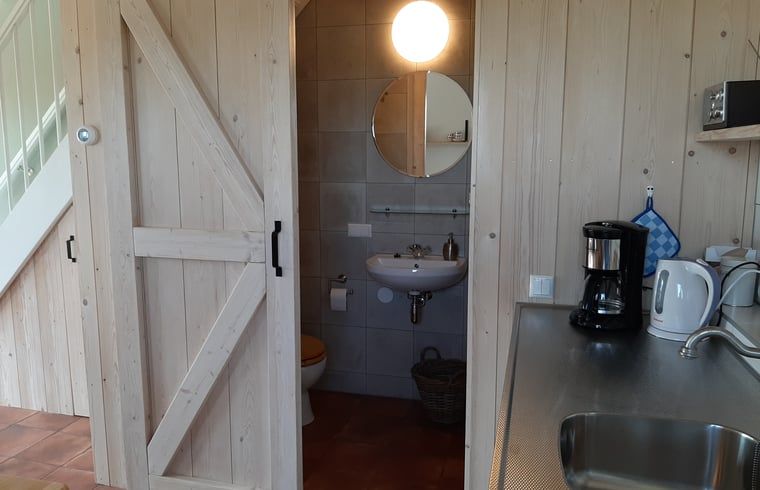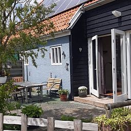 Vacances dans une ferme ovine tranquille, parmi les moutons et les agneaux ! Profitez de tous les animaux de la ferme et de la vie ici. Vous logez là où l'on battait autrefois le blé. Le gîte a été soigneusement aménagé avec des matériaux naturels réutilisés. Les boiseries créent une atmosphère agréable. Les portes de battage ont été remplacées par trois portes coulissantes en verre, ce qui rend l'intérieur merveilleusement lumineux. Au rez-de-chaussée se trouve un coin salon avec cuisine. Du café et du thé sont disponibles, ainsi qu'un œuf de poule fraîchement pondu le matin. Il y a également une salle de bains avec toilettes, lavabo et douche. Un lit double est installé sur la mezzanine. Sur demande, ce lit peut être divisé en deux lits simples. La terrasse orientée au sud est un endroit agréable pour se détendre, avec les nombreuses hirondelles rustiques qui volent au-dessus de votre tête. Dans les bois au fond de la cour se trouve notre moulin à vent qui fournit de l'électricité verte. Il y a un parking dans notre cour et un abri à vélos couvert. Des vélos gratuits sont à votre disposition.