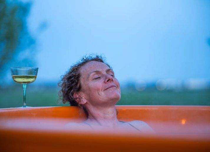 C'est la nouvelle Wikkelhouse du petit camping Boven het Maaiveld, dans le nord de la Hollande. Le design unique en bois rond vous étreint, tandis que les grandes fenêtres vous donnent l'impression d'être à l'extérieur. Profitez de l'immensité et du magnifique lever de soleil depuis votre propre terrasse équipée d'un poêle à bois. Passez des heures dans le bain hollandais Weltevree !