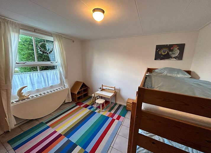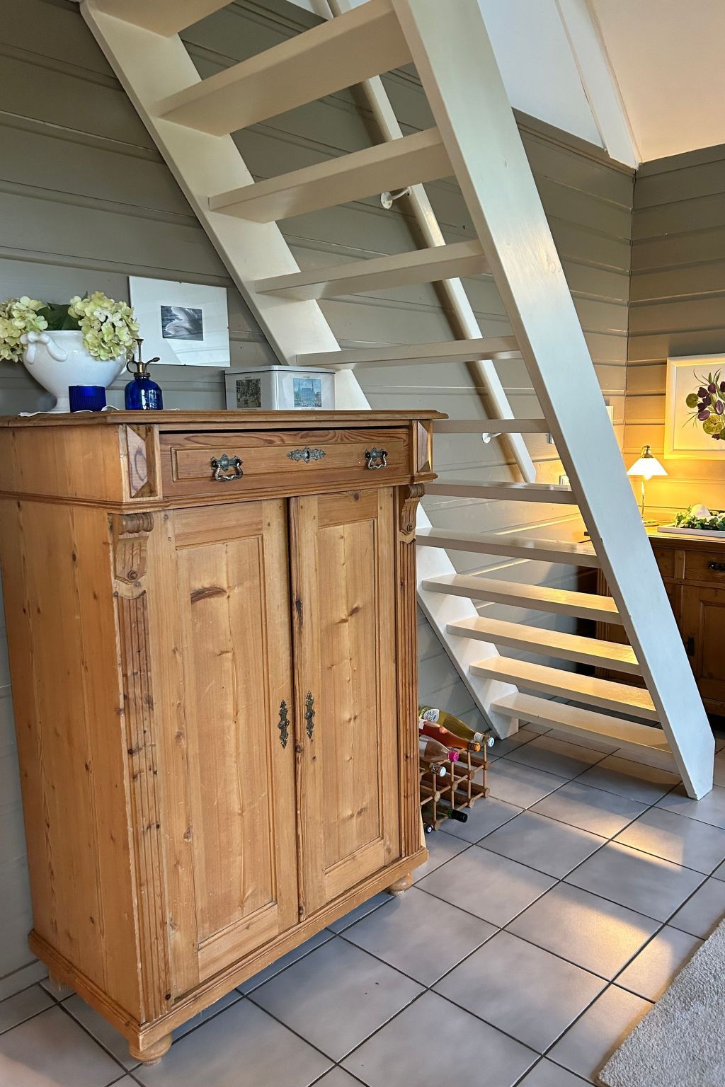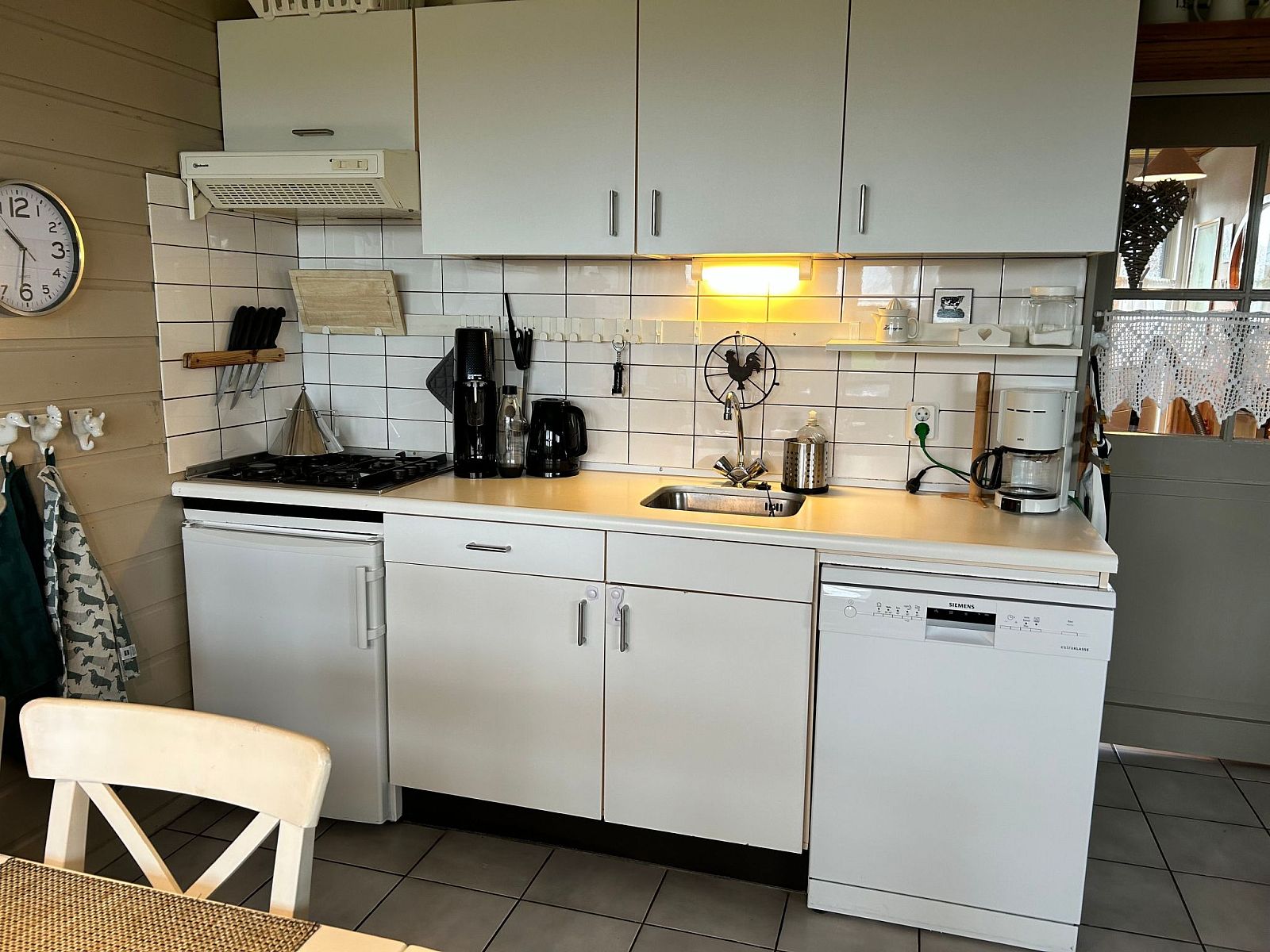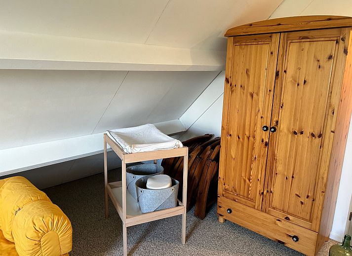 The spacious living and dining area with kitchen is located on the ground floor. The kitchen is equipped with a fridge, gas hob and dishwasher. All the utensils you need for cooking are available. The living room is open up to the roof ridge, furnished with cosy furniture and has an open fireplace that provides cosy warmth in less pleasant weather. TV reception is via satellite with more than 400 programmes. There is also a selection of different literature and games to pass the time. From the dining area you can reach the terrace with adjoining garden and patio furniture. There is also a twin bedroom (bunk bed) with changing table on the ground floor, as well as a storage room with oven, freezer, washing machine and the boiler for the gas central heating. The bathroom is equipped with WC and shower. On the upper floor there is a gallery and a bedroom with a double bed and fitted wardrobes.