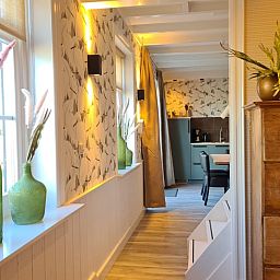 Appartement de bien-être atmosphérique dans une ancienne ferme en milieu rural La cuisine est équipée de tout le luxe nécessaire et d'une table à manger spacieuse. Dans le salon, un grand canapé relaxant, une cheminée d'ambiance et une télévision. A l'étage, grande salle de bain avec sauna, baignoire et douche séparée. 1 chambre avec douche et lavabo privés, 1 chambre avec box et 1 chambre familiale super sympa pour 4 personnes, il y a 2 toilettes. Le terrain est très agréable et dispose de plusieurs terrasses et espaces pour s'asseoir. Très bel appartement pour s'évader ensemble et profiter du bien-être. Mais aussi avec votre famille ou avec deux familles, c'est très agréable de séjourner. (Le prix est basé sur le nombre de personnes, de sorte que même si vous restez ensemble, le prix est bon. L'hôtel est adapté aux enfants et propose des activités sportives et des jeux.