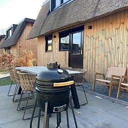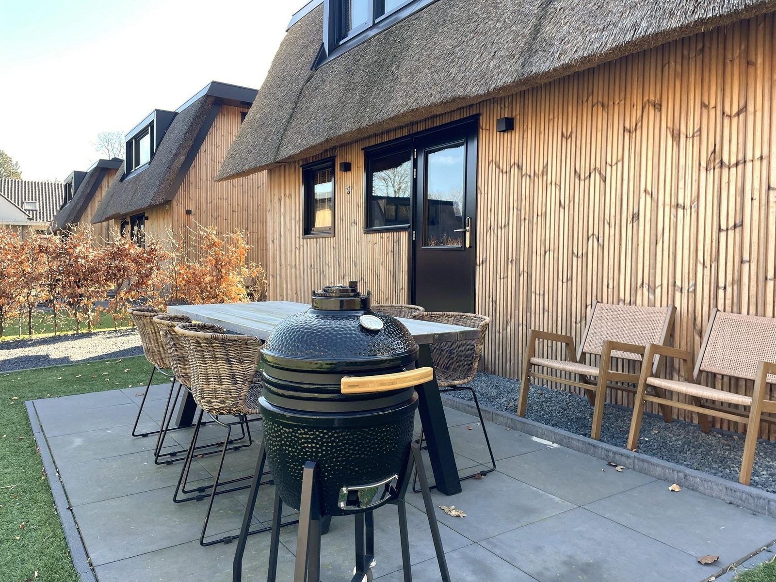 A l'extérieur, vous trouverez une belle terrasse avec des meubles d'extérieur confortables et un Kamado barbecue. Profitez de la vraie vie en plein air ! (Le barbecue doit être utilisé pendant la saison des barbecues, du 1er avril au 30 septembre.)