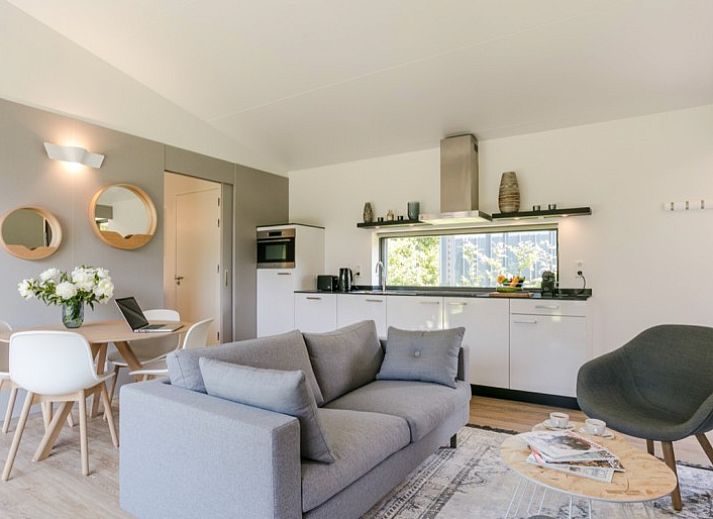 Le salon est très confortablement meublé et bénéficie d'une belle lumière grâce aux grandes ouvertures vitrées. Vous y trouverez un coin salon avec une télévision à écran plat, une table à manger spacieuse et une cheminée intérieure/extérieure au bioéthanol qui offre confort et chaleur à l'intérieur et beaucoup d'ambiance à l'extérieur. La cuisine moderne est très complète et comprend une plaque à induction, un lave-vaisselle, une machine Nespresso et un four à micro-ondes combiné.