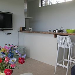 Le studio est situé sur un terrain privé de 200m2 sur le terrain du propriétaire (environ 3000m2). Parking et entrée privés.
