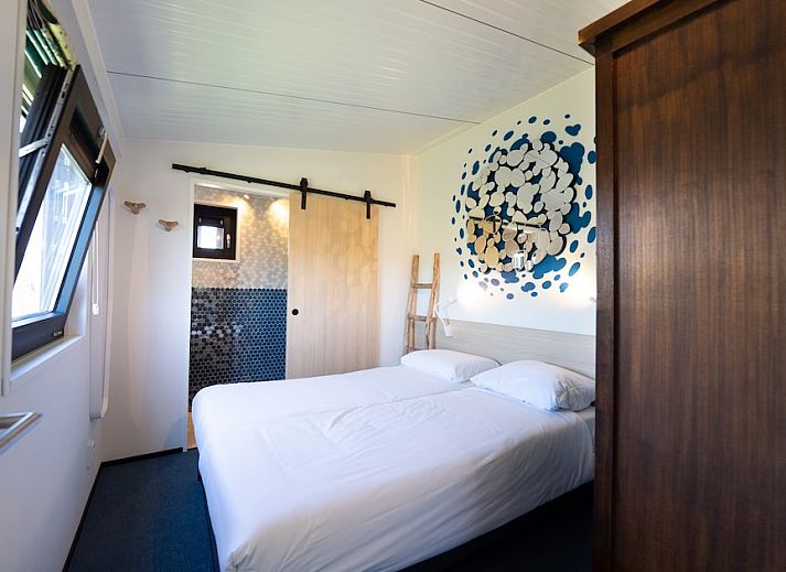 Ce lodge indépendant est entièrement meublé sur le thème de l'eau et peut accueillir 4 personnes. Le salon dispose d'un coin salon et d'une télévision. Il y a un chauffage par le sol. La cuisine est équipée d'un lave-vaisselle, d'un réfrigérateur avec compartiment congélateur, d'un four à micro-ondes, d'une cafetière et d'une bouilloire. Il y a 2 chambres au total. L'une d'entre elles dispose de 2 lits simples, l'autre d'un lit superposé. Dans une chambre, il y a de la place pour un lit de camp pour un bébé. Les deux chambres ont une salle de bains avec chauffage au sol et douche à effet de pluie. Il y a une toilette séparée. Il y a un salon dans le jardin. Le lodge est situé au bord de l'eau. Callantsoog se trouve directement derrière les dunes, qui constituent une partie importante des défenses côtières néerlandaises. L'eau jouera toujours un rôle important et ce lodge unique est décoré sur ce thème. La couleur bleue, mais aussi des illustrations spéciales sur les murs font partie de ce thème. L'aire de jeux pour enfants est un véritable radeau intérieur que l'on monte par des escaliers. Et n'oublions pas le mobilier design unique !