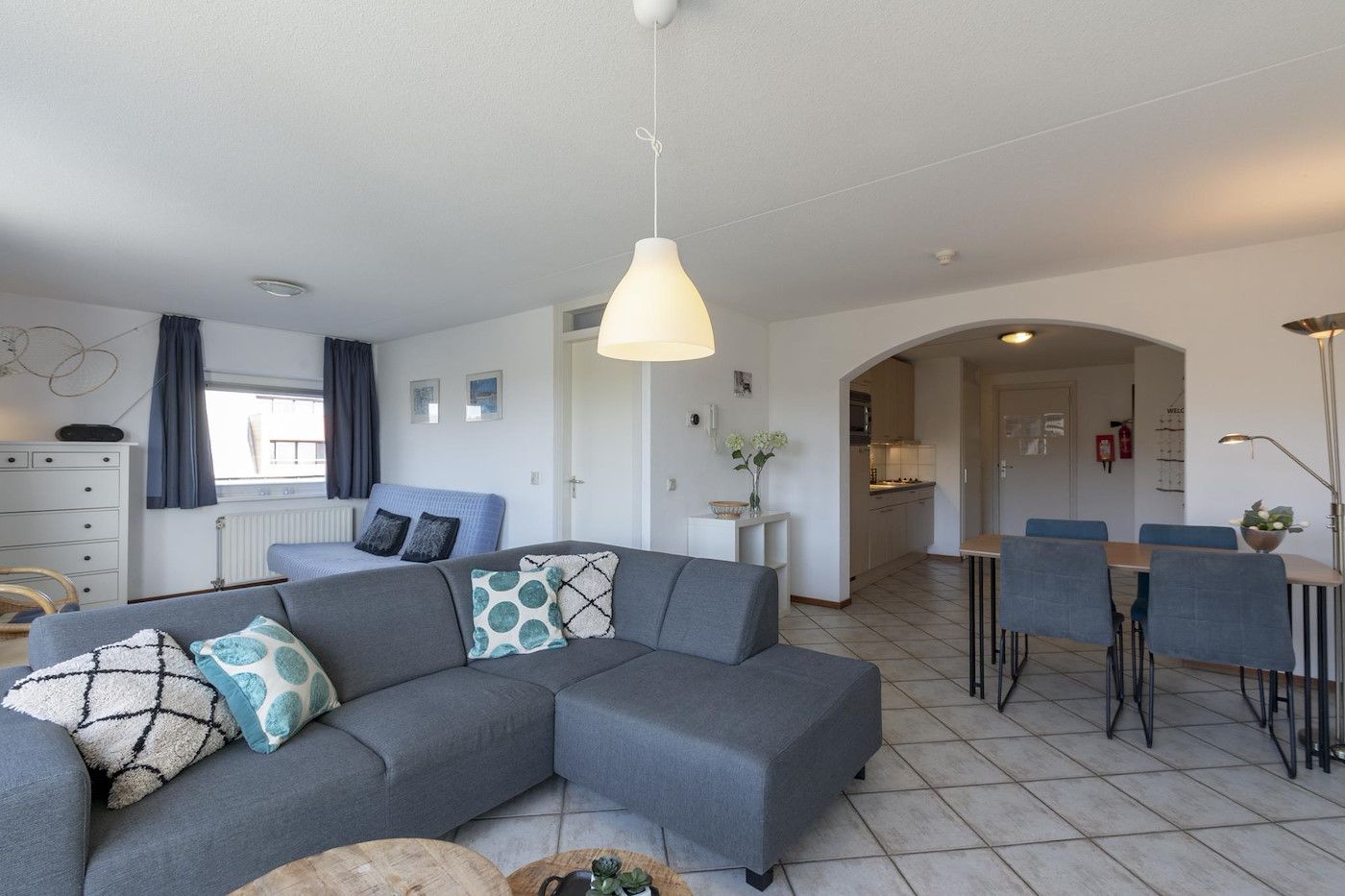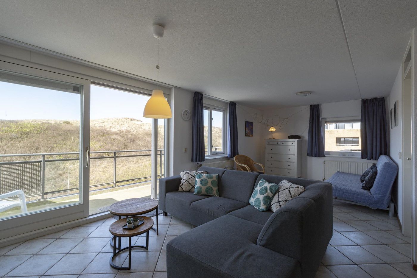 Wijde Blick 311 est un appartement de vacances spacieux et plein d'ambiance sur la côte. L'appartement pour 2 personnes est situé au troisième étage du complexe d'appartements. Vous souhaitez une maison de vacances sur la côte avec une belle vue sur les dunes ? Nous vous recommandons Wijde Blick 309, entre autres. Cet appartement d'angle jouit d'une belle situation et dispose de deux balcons. Le salon confortable et spacieux dispose d'un coin salon, d'une télévision à écran plat, d'un lecteur DVD et d'une radio/lecteur CD. La salle à manger peut accueillir 4 personnes. La cuisine ouverte est entièrement équipée et comprend un lave-vaisselle. L'appartement dispose également d'une chambre spacieuse avec deux lits à sommier et un accès à un balcon supplémentaire. La salle de bains est équipée d'une baignoire, d'une cabine de douche et d'un lavabo. L'appartement dispose également de toilettes séparées. L'appartement dispose d'une connexion Wi-Fi gratuite. Vous cherchez une maison de vacances sur la côte avec votre chien ? C'est également possible ! À Wijde Blick 311, 2 chiens sont admis.