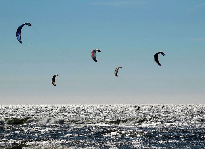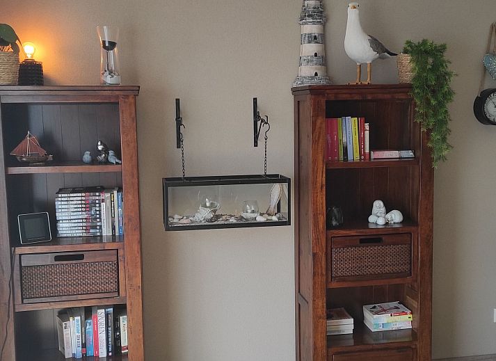 The house has a living/dining room with a kitchenette, two bedrooms and a bathroom. The living/dining room is furnished with a seating area, a television and a dining table for five people. The kitchen is well equipped with an induction cooker, a refrigerator, a dishwasher as well as a coffee machine, combination microwave, kettle, toaster and much more. The wood stove shown is not ready for operation. The master bedroom has a double bed measuring 180 cm x 200 cm. The second bedroom has a bunk bed, each measuring 90 cm x 200 cm. The bathroom has a shower, a toilet and a vanity.